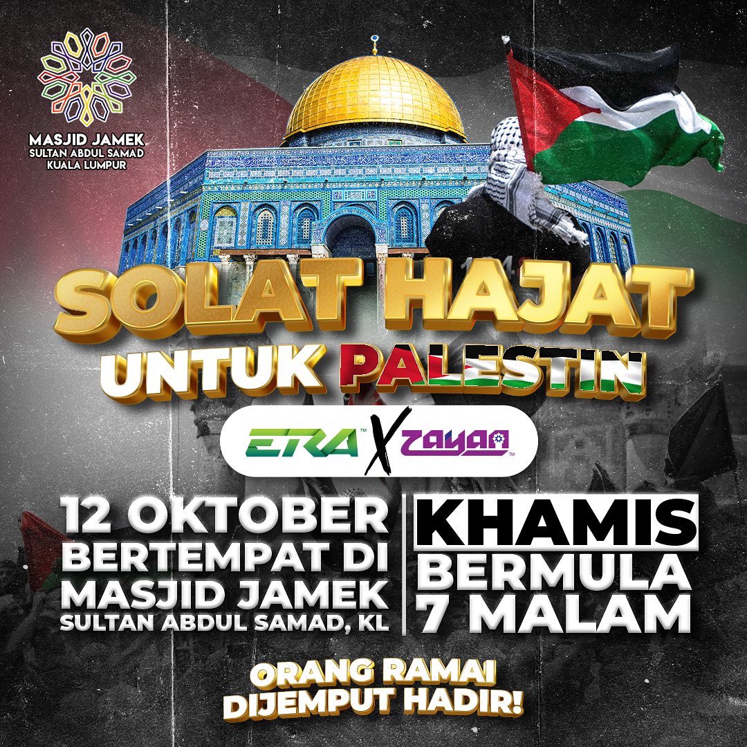 Assalamualaikum semua rakyat Malaysia. ERA dan Zayan akan menganjurkan Solat Hajat untuk Palestin bagi mendoakan kesejahteraan dan keselamatan umat Islam di sana